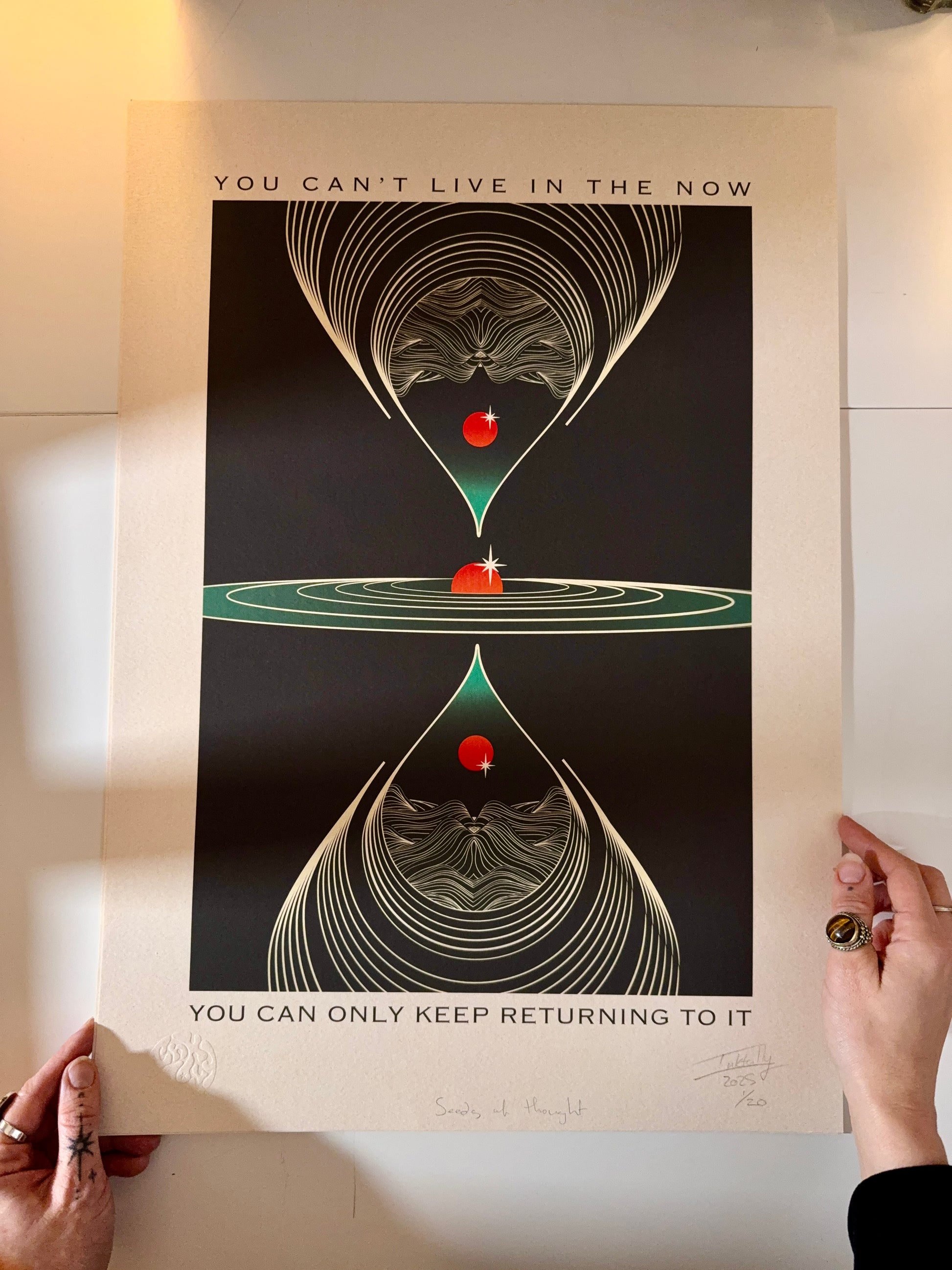 This piece was created during a time of personal overwhelm, where presence felt impossible. It became clear to me that presence isn’t a constant state, it’s a continual returning, a choice made again and again.